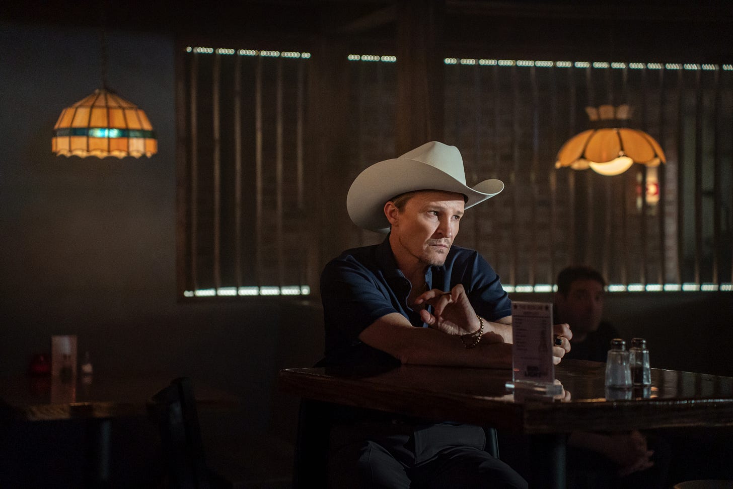 The criminals are getting nastier. His aging mother Kitty (played by Beth Grant), who lives next door, is always nagging about something — lack of manners, lack of faith, lack of hygiene, and so on. And his country-singing wife Maryanne (played by Jennifer Nettles) left him for the sleazebag criminal gambler Lucky (played by Damon Herriman), which isn’t good for their teenage son Cade (played by Maxwel Jenkins).